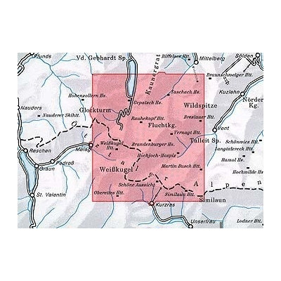 Carta escursionistica dell'area delle Ötztaler Alpen, con l'Ötztal e la Pitztal.