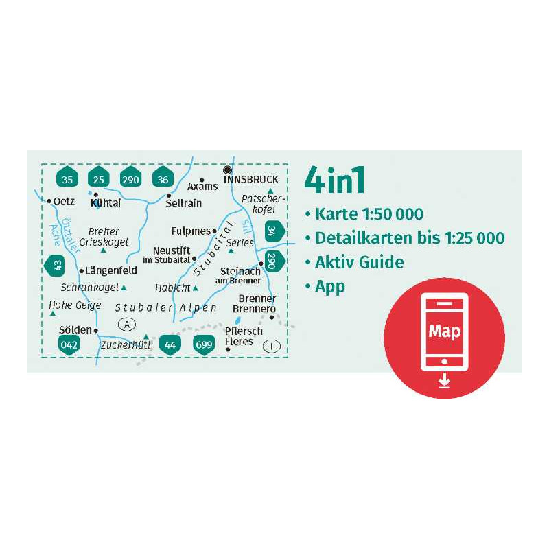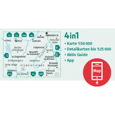 Carta in scala 1:50000. La carta riporta i tracciati per escursioni, mountainbike e scialpinismo, oltre alle coordinate GPS. Sul retro carta panoramica. La carta è realizzata in materiale antistrappo e resistente agli agenti atmosferici.
