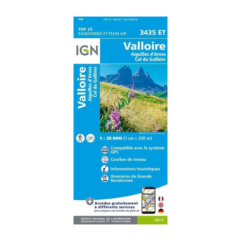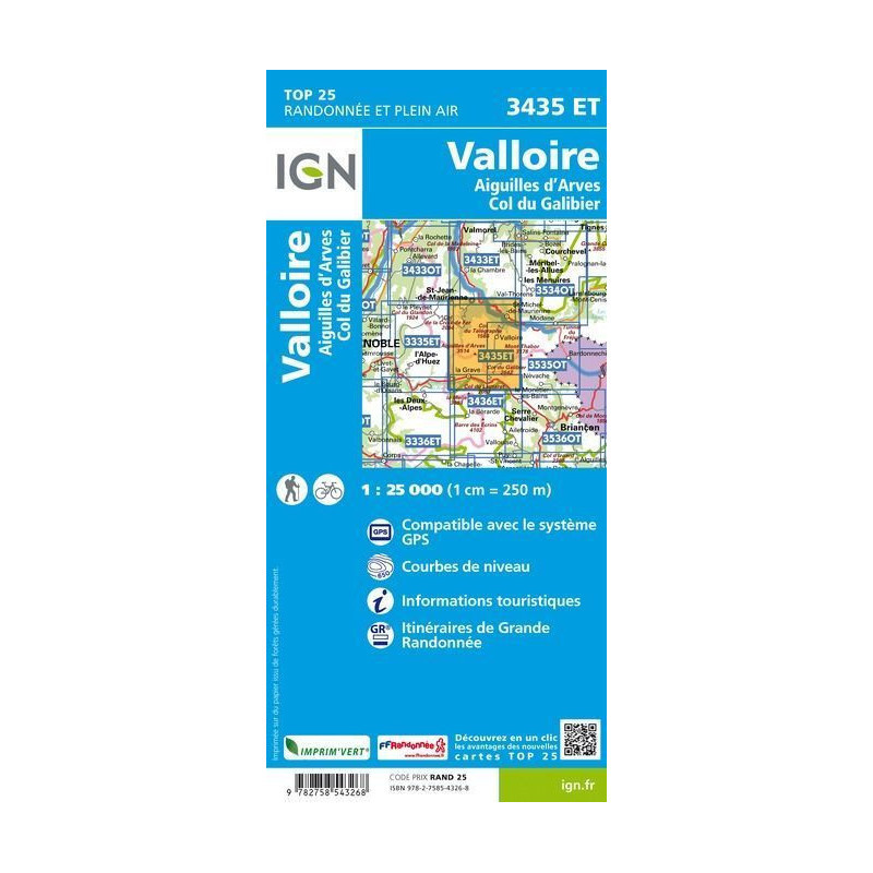 Valloire Aiguilles d'Arves Col du Galibier 3435ET, carta escursionistica in scala 1:25000, edizione IGN. Acquista ora
