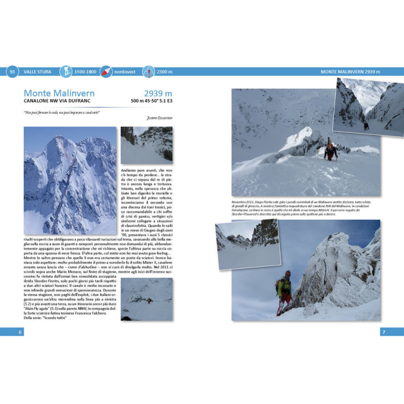 93 Monte MALINVERN CANALONE ''NW., via DUFRANC 5.1 6 - 94 MONTE AVER CANALE NORD 4.2 14 - 95 CIMA DELLA LOMBARDA CANALE NW 4.2 16 - 96 CIMA DELLA VALLETTA CANALE NORD 4.2 18 - 97 Rocca la Paur Canalino N. 4.3 20 - 98 Punta MALADECIA canale-parete SW 4.1 24 - 99 Punta MALADECIACanale NW "Attrazione fatale" 4.2 28 - 100 C. Maladecia canale ENE, "Pace in Marittime, pace nei Balcani" 5.2 32 - 101 P. MALADECIA CANALE-PARETE EST "La Mitica" 5.2 38 - 102 M. Steliere, paretina W. 4.1 50 - 103 Monte SALETTA CANALONE SE 4.2 52 - 104 M. LAROUSSA PARETE Est + CANALINO 4.2 54 - 105 Testa dell'AUTARET CANALI N-NW 4.2 56 - 106 Testa di COSTABELLA DEL PIZ CANALE SE 4.2/3 60 - 107 Monte SALETTA PARETE Nord 4.2 62 - 108 Monte SALETTA CANALE NW 4.2 64 - 109 Monte LARUSSA PARETE nord 4.2 70 - 110 Cime sud dell'ISCHIATOR Canale sudest" - L'eiaculazione del coniglio" 4.2 74 - 111 P. GIOFFREDO canale-PARETE Est 4.2 80 - 112 P. GIOFFREDO CANALE N. diretto 4.2 82 - 113 P. GIOFFREDO COULOIR "Z" 4.2 84 - 114 C. CORBORANT, SCHIENA E.+CANALI SE e N 4.2 87 - 115 Becco Alto dell'ISCHIATOR PARETINA W 4.2 90 - 116 Rocca ROSSA CANALI NNE 4.2 94 - 117 Anticima di R. ROSSA , PARETINA NE, Via "Cuore selvaggio" 4.3 96 - 118 Monte TENIBRES CANALONI NORD 4.1 98 - 119 Becco Alto del PIZ PARETE E 5.2 104 - 120 T. dell'UBAC, Via Direttissima Est-sudest. 4.3 108 - 121 Becco Alto del PIZ + Scolettas 5.1 110 - 122 Testa di PANIERIS CANALE NE 4.1 114 - 123 Cima di LAS BLANCIAS CANALONE SE "El Bandit" 4.3 116 - 124 MONTE del VALLONETTO COUL. estnordest "La perla rara" 4.3 E3 122 - 125 M. del VALLONETTO CAN. SUD-SUDEST Via "Magic line" 4.3 124 - 126 Cime di VENS CANALI SE 4.2 128 - 127 M. BASSURA CANALE WSW "Fuoco alle polveri!" 4.1 130 - 128 Punta di GORGION LUNGO CANALI Sud 4.2 134 - 129 M. PEIRON CANALE W. 3.3 139 - 130 Monte PEBRUN CANALONE NE 4.2 144 - 131 Monte OSEROT SCIVOLI SUD 3.3 150 - 132 Monte NEBIUS PARETE E CANALONE OVEST 4.3 154 - 133 M. ORONAYE CANALE S. sinistra, Via "4 nani" 4.2 160 - 134 M. ORONAYE, CANALE S. di Dx., Via Debenedetti 5.1 162 - 135 Aiguille orientale d'ORONAYE CANALI SO-SSO 4.1 166 - 136 Somm. la MEYNA Integrale Sud 5.3 170 - 137 Sommet de la MEYNA par. nord, via "P. Lombard" 5.3 173 - 138 Crevoux Pic (point d'EYSSINA) Parete Nordest 5.1 174