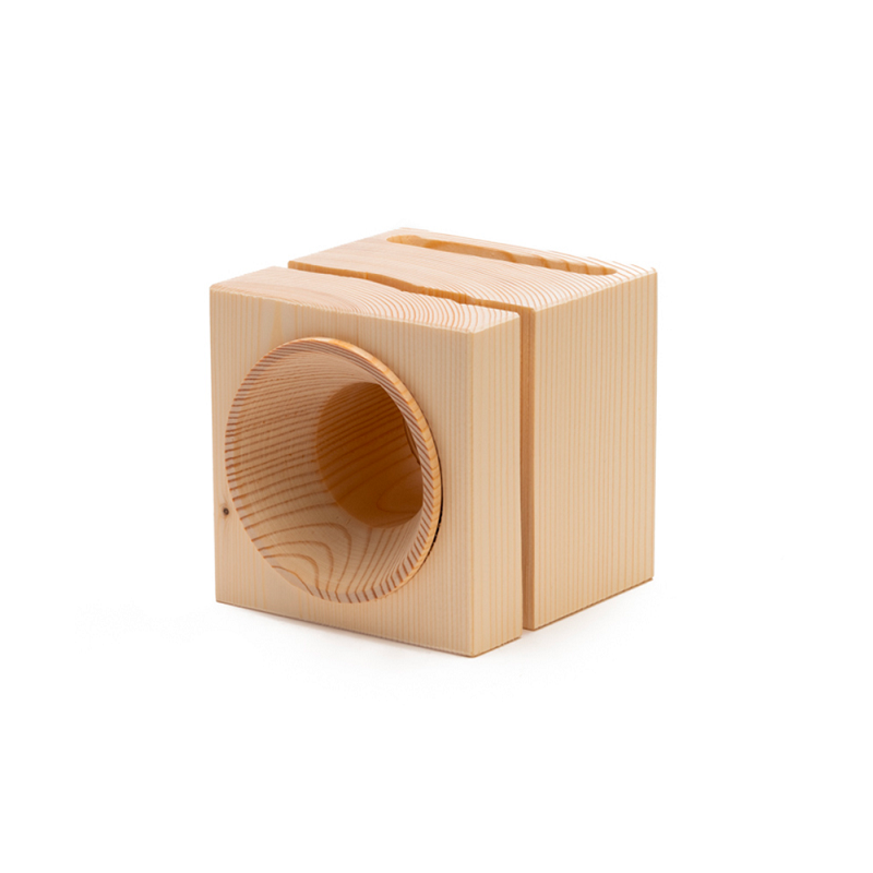 //Funzionale// VAIA Cube è anche una cassa passiva che produce suoni caldi e profondi. La sua spontanea caratteristica di amplificazione viene data dall’abete rosso, famoso perché usato dai liutai per costruire strumenti a corda. Basta poggiare il tuo smartphone sulla cassa.