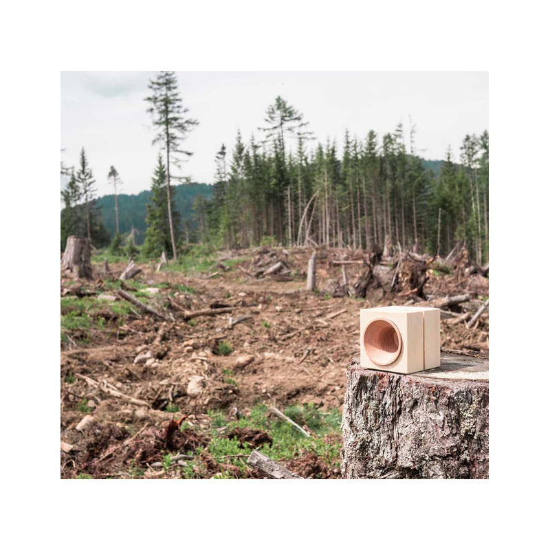 Vaia Cube, cassa di amplificazione realizzata con legno di abete rosso ricavato dagli alberi abbattuti dalla tempesta Vaia. Acquista
