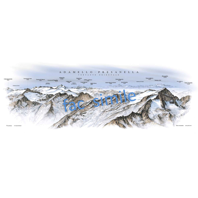 Immagine panoramica del gruppo montuoso con toponomastica delle vette e rispettive altimetrie.